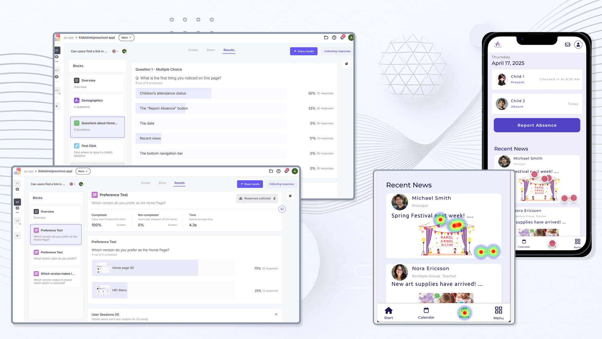 We conducted in-depth interviews with seven parents and staff to uncover everyday communication challenges in preschool settings. These insights became the foundation for defining user types and shaping the Kiddolink app’s core features.