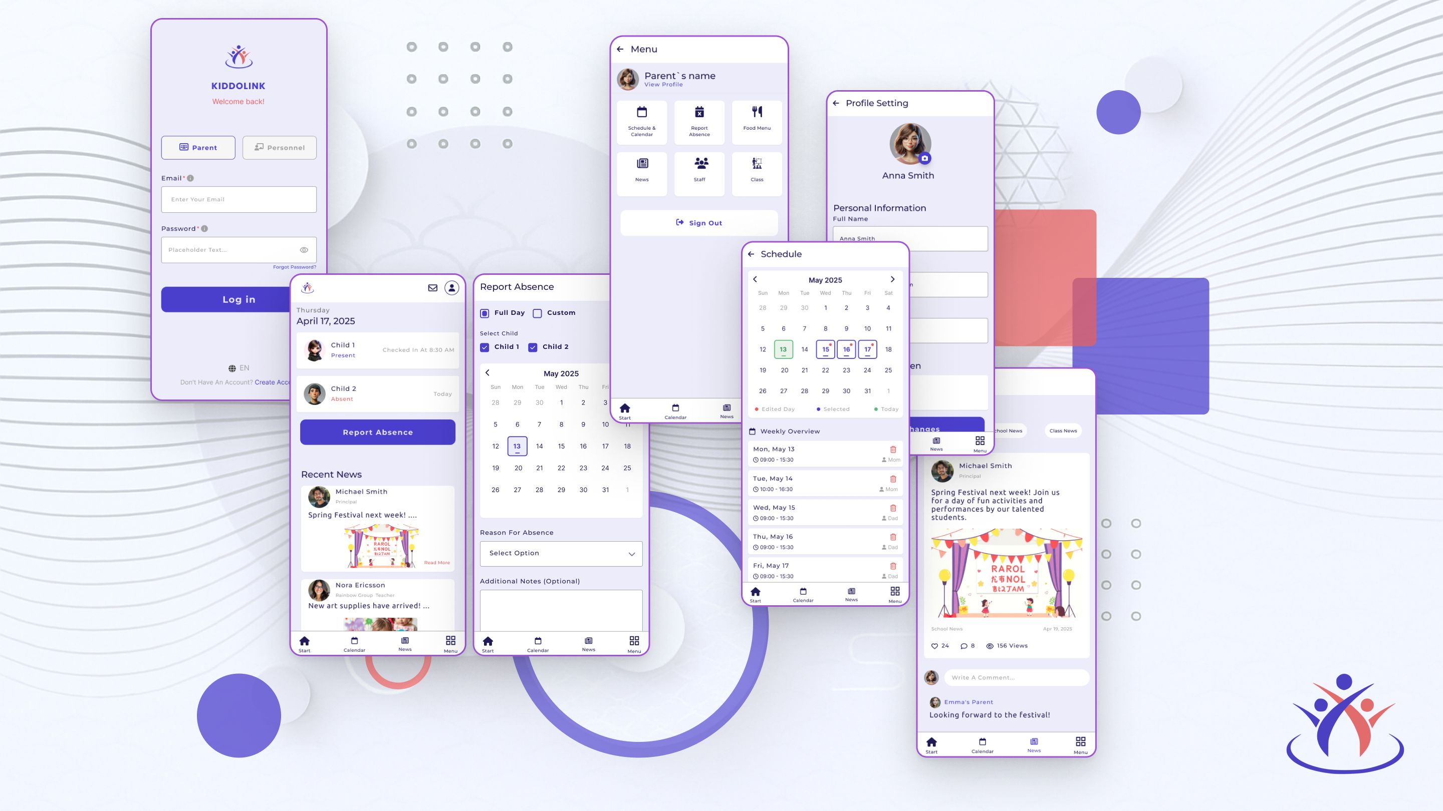 We conducted in-depth interviews with seven parents and staff to uncover everyday communication challenges in preschool settings. These insights became the foundation for defining user types and shaping the Kiddolink app’s core features.