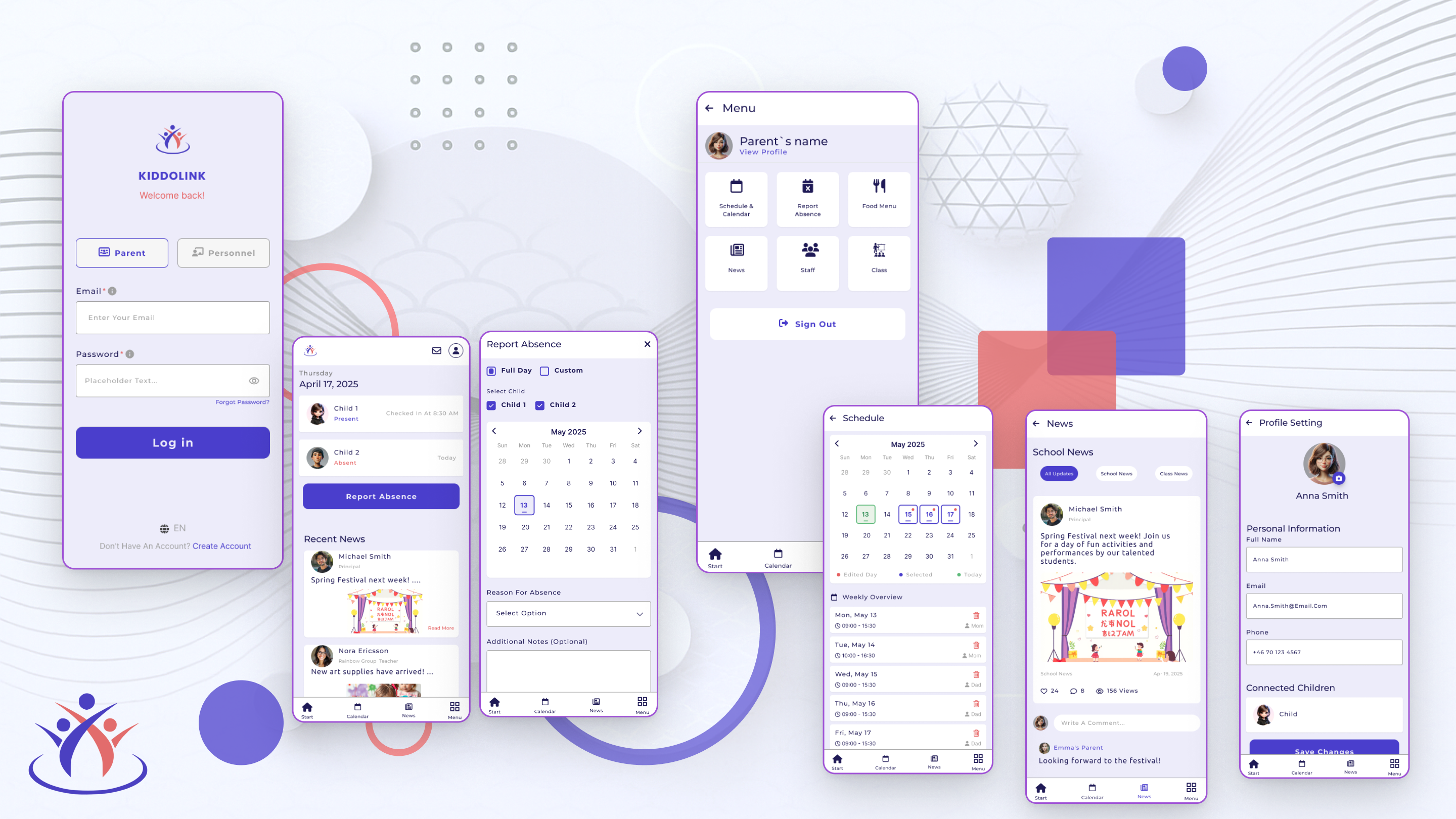 These screens reflect the final visual style, branding, and responsive layout of the Kiddolink MVP.